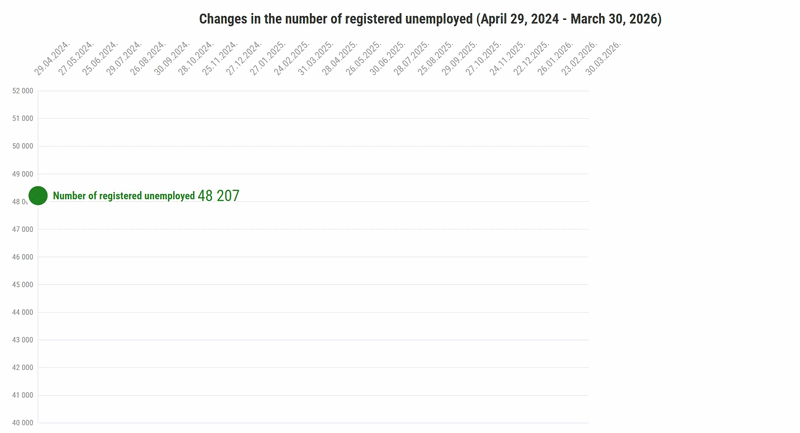 According to the data of the SEA, as of February 28, 2026, the number of registered clients (unemployed) is 45,761, the registered unemployment rate is 5.2%.