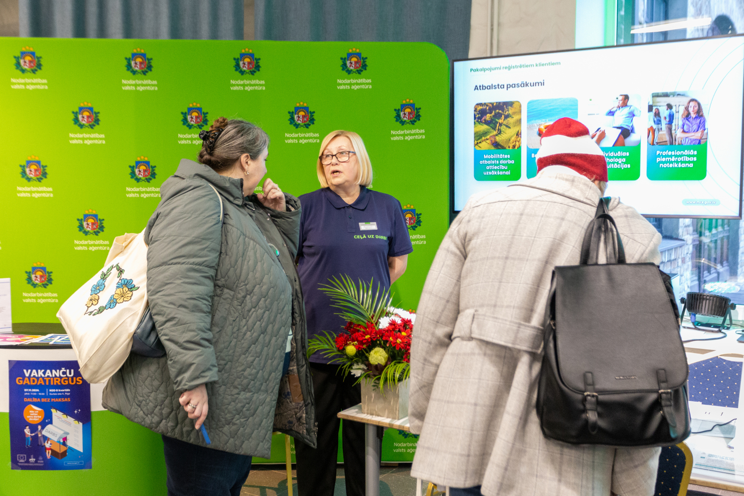 NVA speciālisti abos pasākumos interesentus konsultēja karjeras plānošanas un darba meklēšanas jautājumos, informēja par darba mobilitātes iespējām un valsts piedāvāto atbalstu darba tirgū pieprasīto prasmju apguvei vai uzlabošanai. NVA stendā darba meklētāji varēja uzzināt arī par NVA CV un vakanču portālā pieejamajām vakancēm. NVA datu bāzē novembra sākumā aktuālas bija 15 880 brīvās darbavietas.